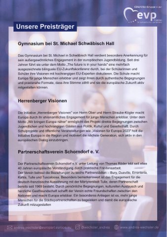 Preisverleihung Partnerschaftsverein Schorndorf